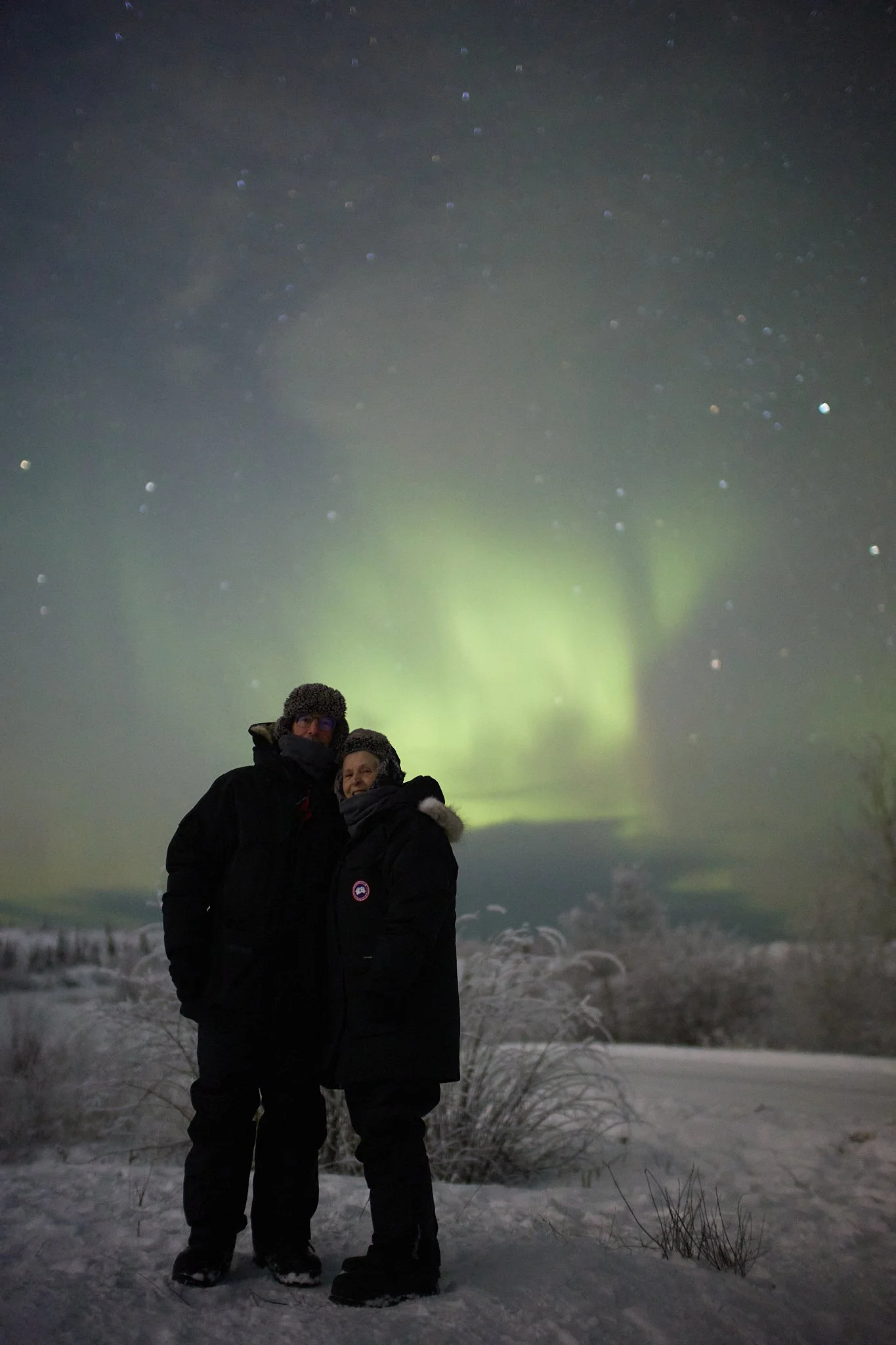 While everyone trickled out of the B&B tonight, I chatted with a guest at the car about the aurora, under very cloudy skies with some light snow falling. She showed me a photo of the aurora she hoped to imitate tonight. It was probably my smile and gentle laugh that made us both crack up and really laugh together. Another guest was returning after having been to Yellowknife almost exactly 10 years earlier. This was all a warmth within minutes of meeting that you don’t often feel for months or years of a friendship, but the aurora and this environment will do that.