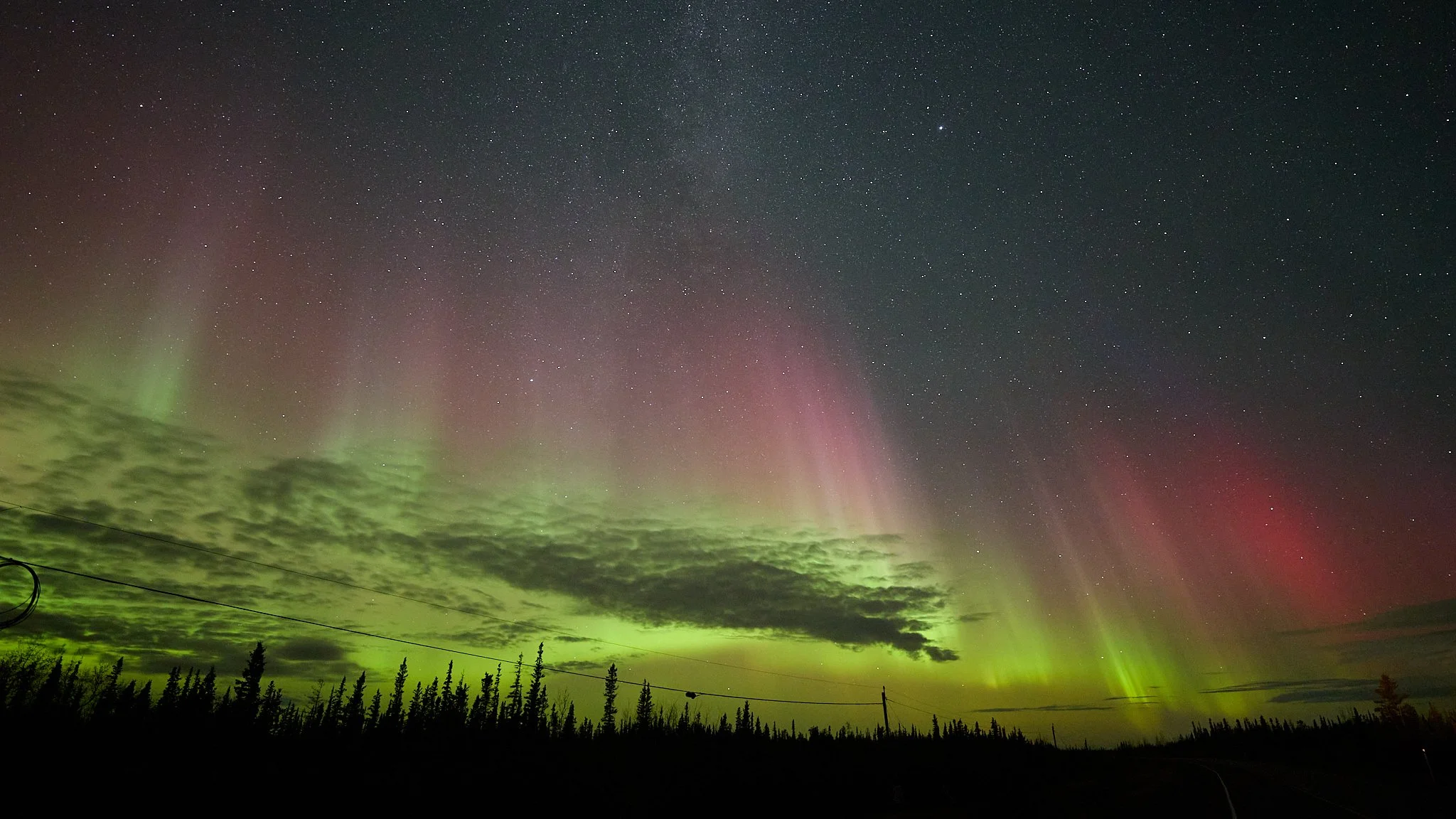 It was a cloudy night in Yellowknife through and through, and after a good half hour drive out we reached partly clear skies which didn’t last. We were getting clouded out with the clear breaks being eaten up entirely by cloud and what was left of the clear break was moving back toward Yellowknife.
