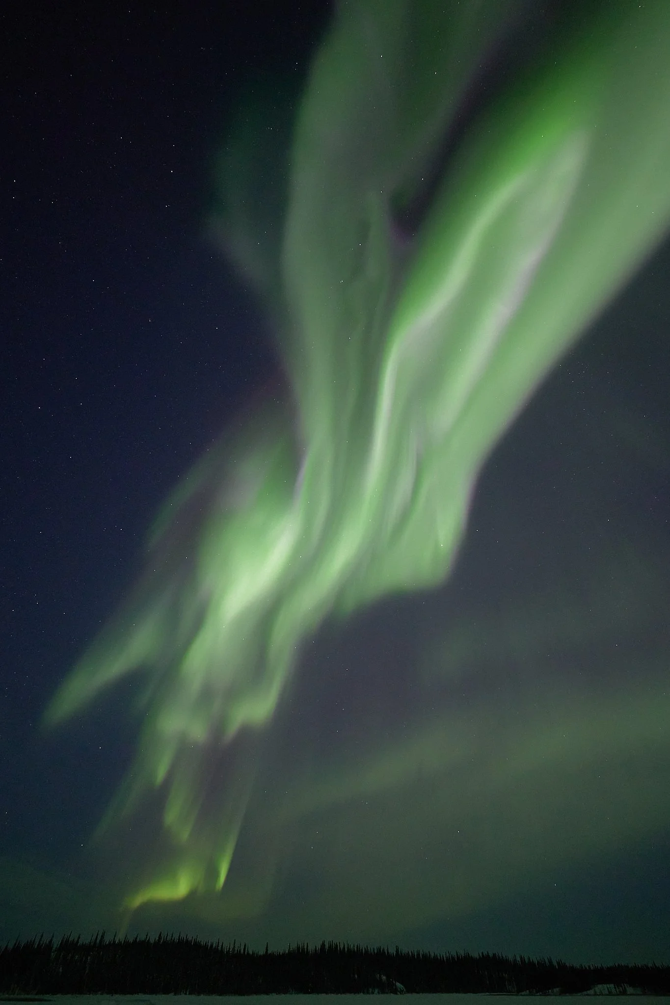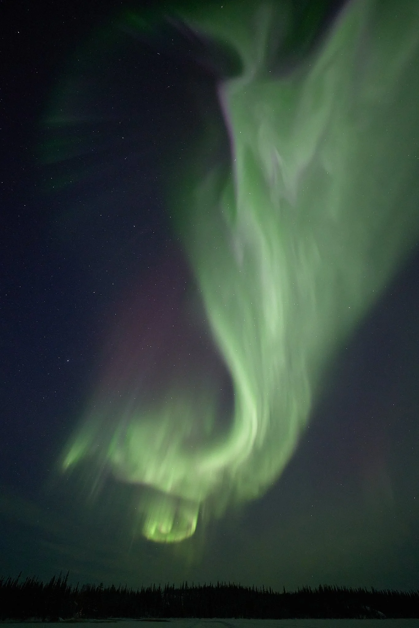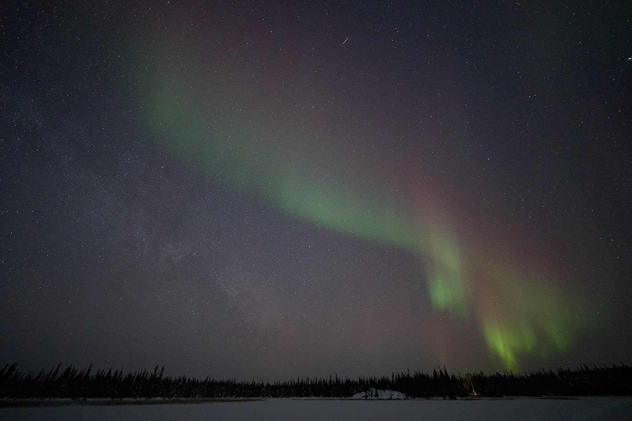 However, shortly after we did once again insist on taking ourselves further off solar time, we had the kind of night which would have been much less painful on standard time. It was the kind of night that demanded a lot of patience, still in the -30s of course. Hours passed and passed but we remained, and finally passing 3am, we were there under exactly what we had been waiting so long for. But the 4am return to town, at the end of an exhausting season through a never ending winter, cumulatively, does take a toll.