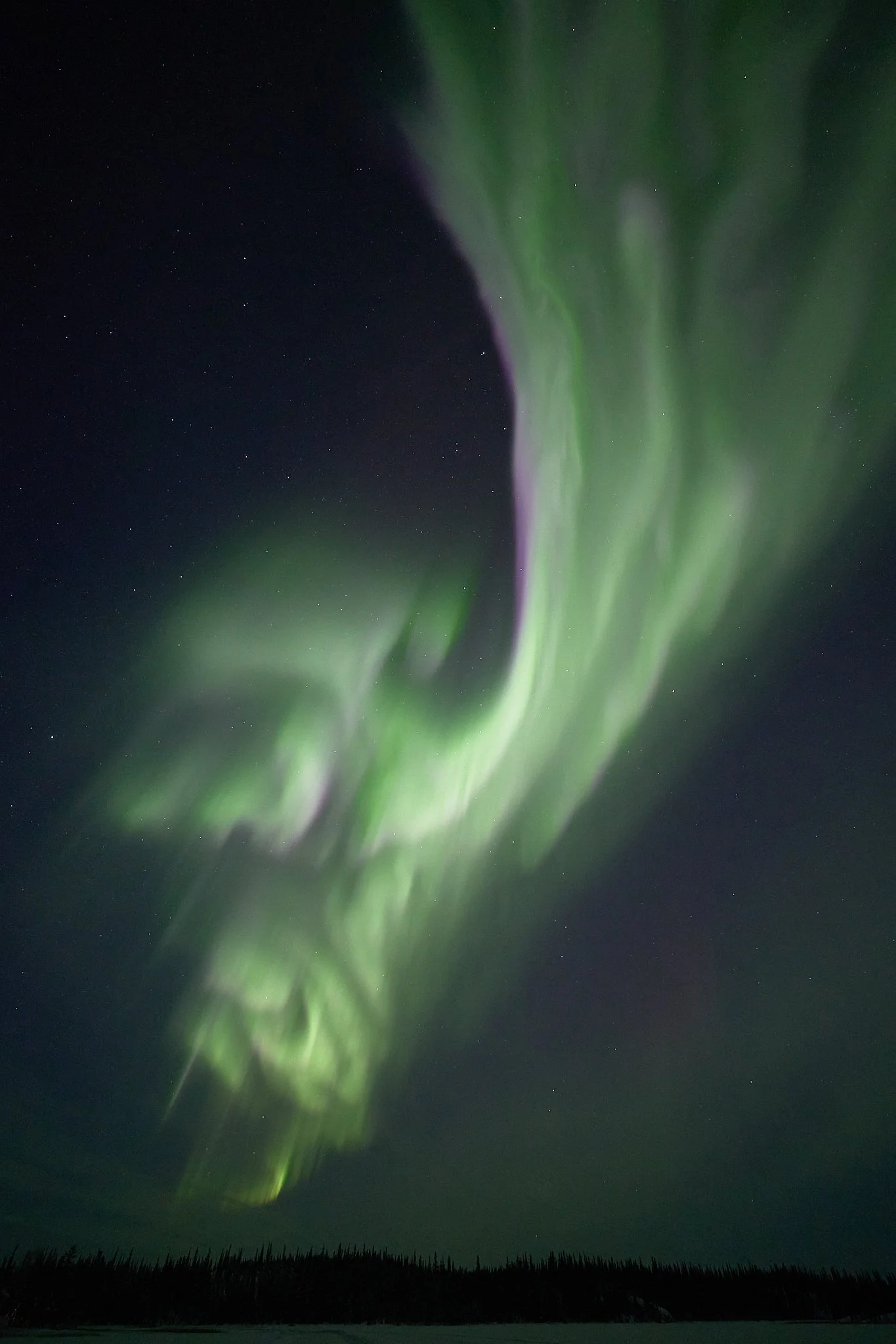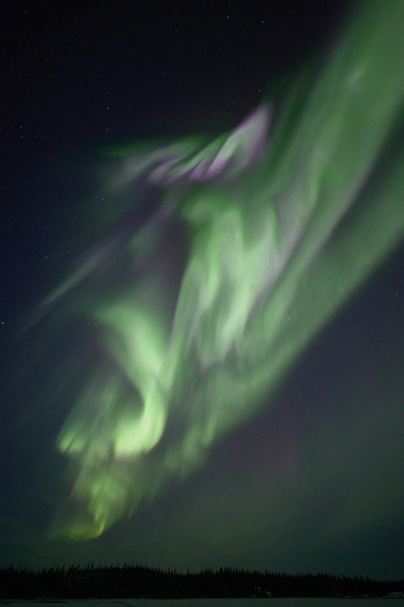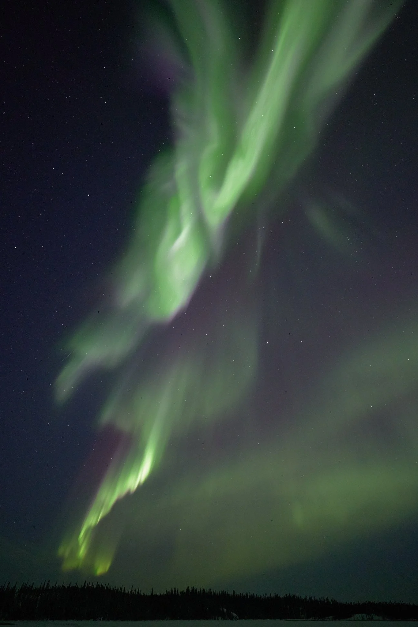 However, shortly after we did once again insist on taking ourselves further off solar time, we had the kind of night which would have been much less painful on standard time. It was the kind of night that demanded a lot of patience, still in the -30s of course. Hours passed and passed but we remained, and finally passing 3am, we were there under exactly what we had been waiting so long for. But the 4am return to town, at the end of an exhausting season through a never ending winter, cumulatively, does take a toll.