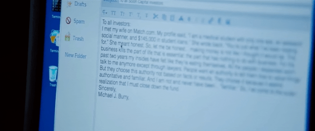 There is a scene at the end of The Big Short, my favourite movie, where Michael Burry writes to his investors announcing that he must close down the fund. He has finally been proven right, but a part of him is broken.