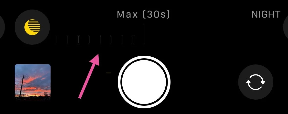 4) Drag the slider left or right to choose either the Auto or Max timers. Max will give you the longest exposure time available - either 5 or 10 seconds if the phone is hand held, or 30 seconds if it’s completely still.