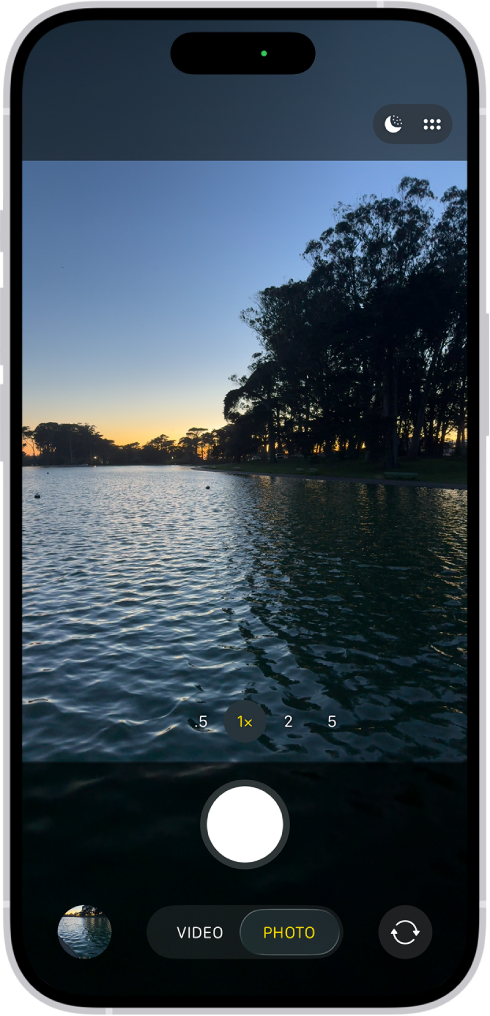 1) Open the Camera app on your iPhone, and ensure Night mode is On (a crescent moon icon in the top right corner)